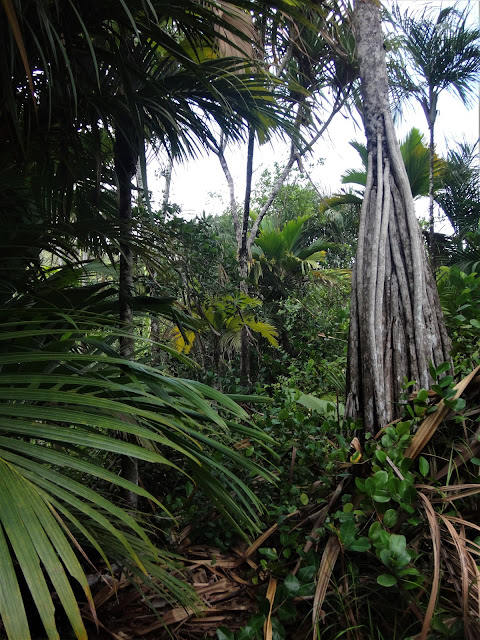 la marche se fait majoritairement à couvert en forêt, nous sommes entouré d'une luxuriante végétation, bananiers, arbres à pain, manglier, palétuviers, vacoa